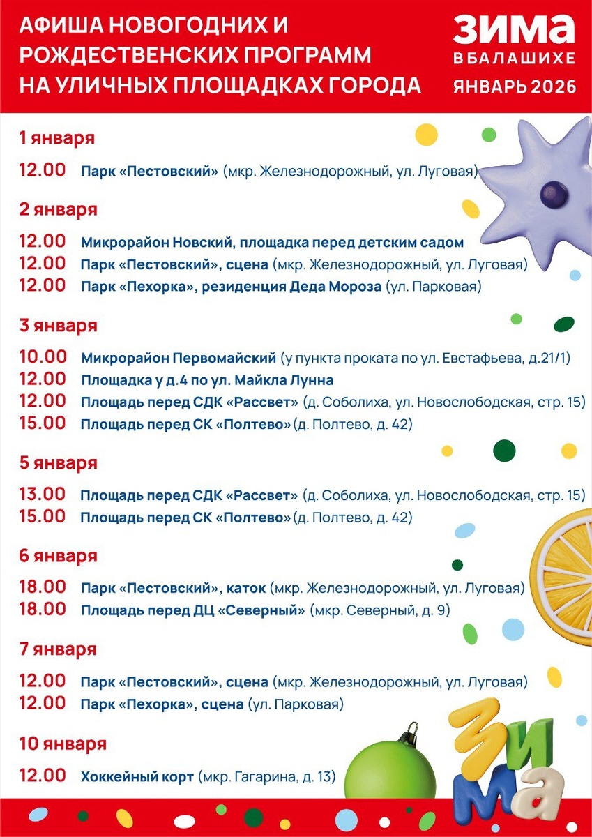 Новогодние мероприятия 2026 Железнодорожный, Балашиха