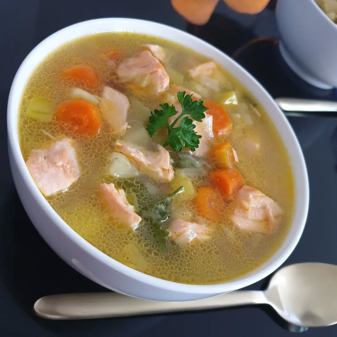 Из расчета на 6 порций. 300 г горбуши 100 г пшена 2 картофелины 1 луковица 1 помидор 2-4 веточки петрушки по 2-3 горошины душистого и черного перца соль,свежемолотый черный перец - по вкусу 1.Доводим до кипения 1,5л воды.На сухой сковороде обжариваем целую луковицу до образования подпалины,кладем эту луковицу в кастрюлю. Добавляем крупно нарезанную морковь,горошины перца и варить примерно 10 мин. 2.Кладем в кастрюлю рыбу и нарезанный картофель,всыпаем пшено,уменьшаем нагрев,варить 10 мин. на очень маленьком огне,не допуская бурного кипения. Нарезаем помидор мелкими кубиками,добавляем в суп и варим еще 10 мин. 3.Луковицу удаляем.Вынимаем рыбу и разбираем ее на кусочки.Доводим суп до кипения и снимаем с огня. 4.Наливаем суп в тарелки,добавляем кусочки рыбы,приправляем перцем и посыпаем мелко нарезанной петрушкой. ПРИЯТНОГО АППЕТИТА! КУШАЙТЕ И НИКОГО НЕ СЛУШАЙТЕ!