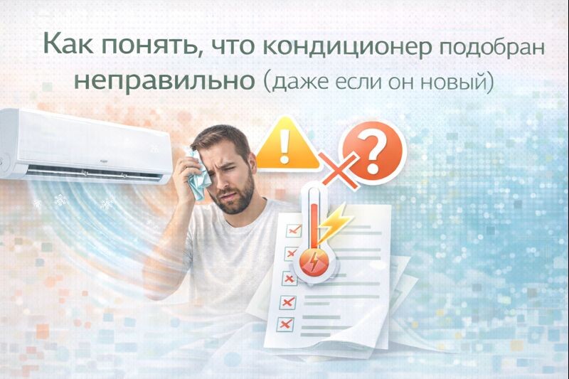 Кондиционер дует, включается, охлаждает — формально он исправен. Но в комнате либо душно, либо холодно, либо шумно, либо пользоваться им просто неудобно. В большинстве таких случаев причина не в браке и не в «плохой модели», а в том, что кондиционер изначально был подобран неправильно.