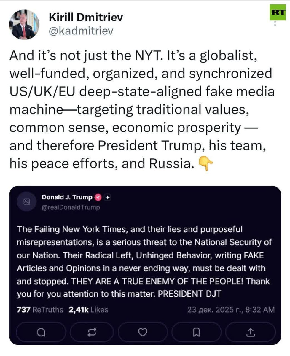 Not just the NYT — it's whole of fake media MACHINE against Trump & Russia — Putin's envoy Dmitriev