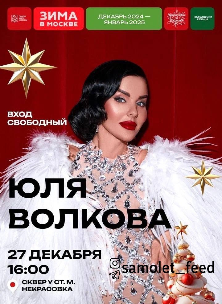 Юлия Волкова (вокалистка t.A.T.u.) приезжает в Некрасовку 27 декабря.