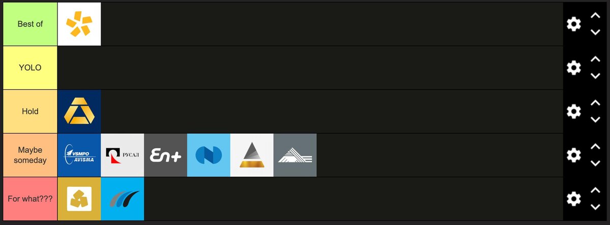 Напоминание для новых читателей о предыдущих постах: 1. Как начать инвестировать? 2. Как выбрать акции? 3. Тир-лист: алмазы, уголь, сталь. Не является инвестиционной рекомендацией. ВСПМО-АВИСМА. Российская металлургическая компания, специализирующаяся на производстве титана и изделий из него. В 2024 году Россия заняла 24-ое место в мире по объемам производства титана. Первое место занимает Китай, с объемом производства в 2154 раза выше российского. Три крупнейших экспортера - Индия, Индонезия, Китай. Три крупнейших импортера - США, Бразилия, Филиппины. Компания не имеет весомого конкурентного преимущества, на рынке доминируют другие страны, дивиденды не платит. РУСАЛ, En+. РУСАЛ является третьим по величине производителем первичного алюминия в мире. На долю компании приходится почти 9% мирового производства первичного алюминия и глинозёма. Компания работает в 13 странах на пяти континентах, её штат насчитывает 61 000 человек, а объём производства в 2021 году составил 3,8 млн тонн. Всё