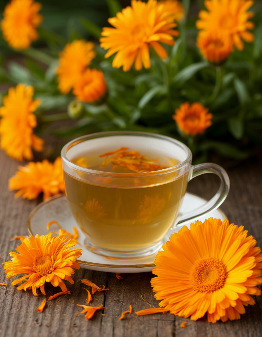 1. Залейте календулу кипятком и дайте ей настояться в течение нескольких часов.