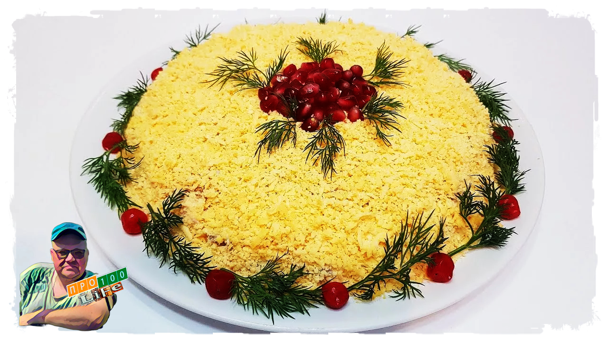 Верх украсьте желтком и зеленью. Совет! Если хотите добавить яркости — украсьте гранатовыми зёрнами или ломтиками оливок. Ингредиенты: Итого: ~270 руб. Как готовить: