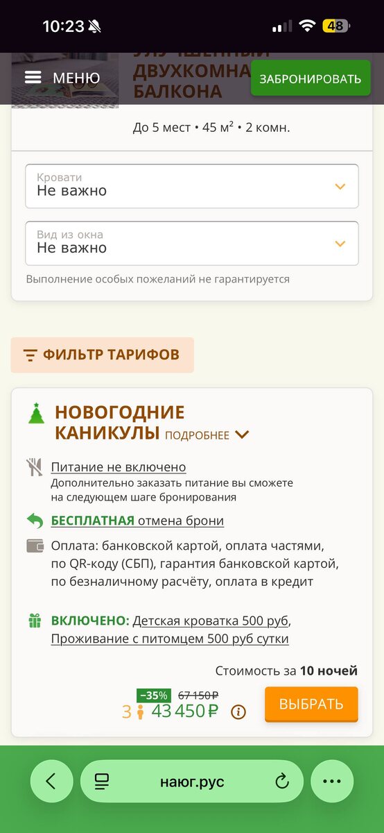Специальный тариф на продолжительные каникулы - от 10 ночей со скидкой. Еще остались несколько номеров с этой акцией