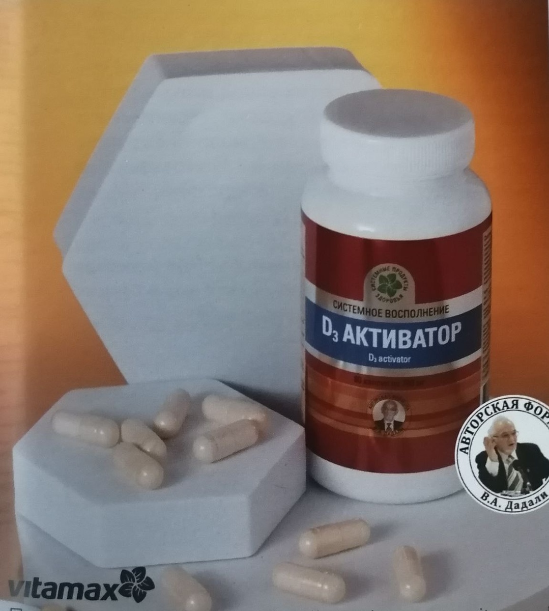 (фирмы "Vitamax ") - это Иновационный комплекс ,который не просто содержит вит.Д3, а обеспечивает его полноценное превращение в активную форму,за счёт активаторов: К2, Цинка глицината, Селена,Магния цитрата, вит.Е,С,В2,В3. Другие эффекты Д3-Активатора : ✔️-улучшает переносимость фруктозы,бобовых, лактозы, казеина. ✔️ лучше усваивается железо ✔️ активация синтеза Т3(гормона щитовидной железы ) ✔️ профилактика сахарного диабета 2типа ✔️ при коррекции веса(участвует в липидном обмене) ✔️ нейтрализация и выведение токсических металлов ✔️ активация синтеза коллагена ДОЗИРОВКА : 1-2капс/день с едой . ❗️❗️❗️До 31.12.25г можно приобрести в офисах (ул. Сурикова-12, оф.201 ) и на сайте ( Spz03.ru ) по моему промокоду 838460 со сидкой 15%.