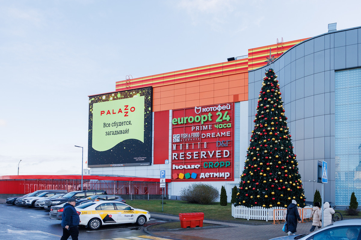 В Palazzo появился самый большой в стране наружный 3D-экран. утверждают в ТРЦ. Его площадь превышает размеры теннисного корта. Вскоре на нем станут транслировать трехмерные ролики с эффектом погружения, когда кажется, что персонажи оживают и несутся прямо на тебя. Дисплей находится в северной части торгового центра, рядом с парковкой и автобусной остановкой. По масштабу он сравним с экранами в кинотеатрах: длина — почти 27,6 метра, ширина — 13. Общая площадь – 358,3 «квадрата». Экран угловой: тянется 13 метров в одну сторону и 14 — в другую. Монитор может показывать видео формата Full HD. Разрешение даже превышает необходимый норматив и достигает 2646 на 1248 пикселей. Сейчас на экране демонстрируют стандартные двухмерные ролики. В ТРЦ обещают, что уже скоро там появятся специально созданные 3D-видео с эффектом погружения. Возможности дисплея позволяют «оживлять» картинку, как на знаменитом билборде на Тайм-сквер в Нью-Йорке. На доли секунды может возникнуть ощущение, что вот-вот накро