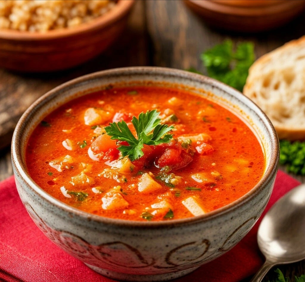 ПОЧЕМУ ЭТО ШЕДЕВР? 🎨 Мясо,томлёное на кости, даёт насыщенный бульон. Мука с паприкой загущают суп, делая его бархатистым. А мята даёт ту самую фирменную освежающую ноту, которая отличает чорбу от любого другого супа. Это концентрат домашнего уюта! 🏠