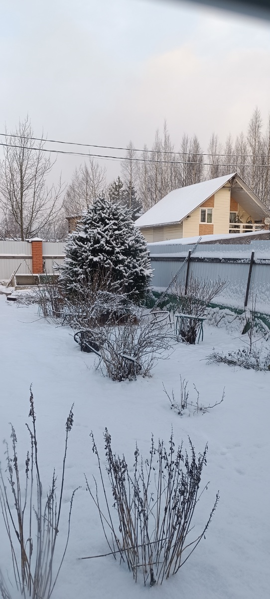 Но, у нас новости. У нас снег! И это так хорошо, мы так устали от сырости и серости... Вчера фонари на дороге зажглись примерно в 12.10... днём... То есть, сумерки ещё не успели закончиться, как снова начались, а все это без снега совсем тяжело, хочется "беленького" и "светленького".