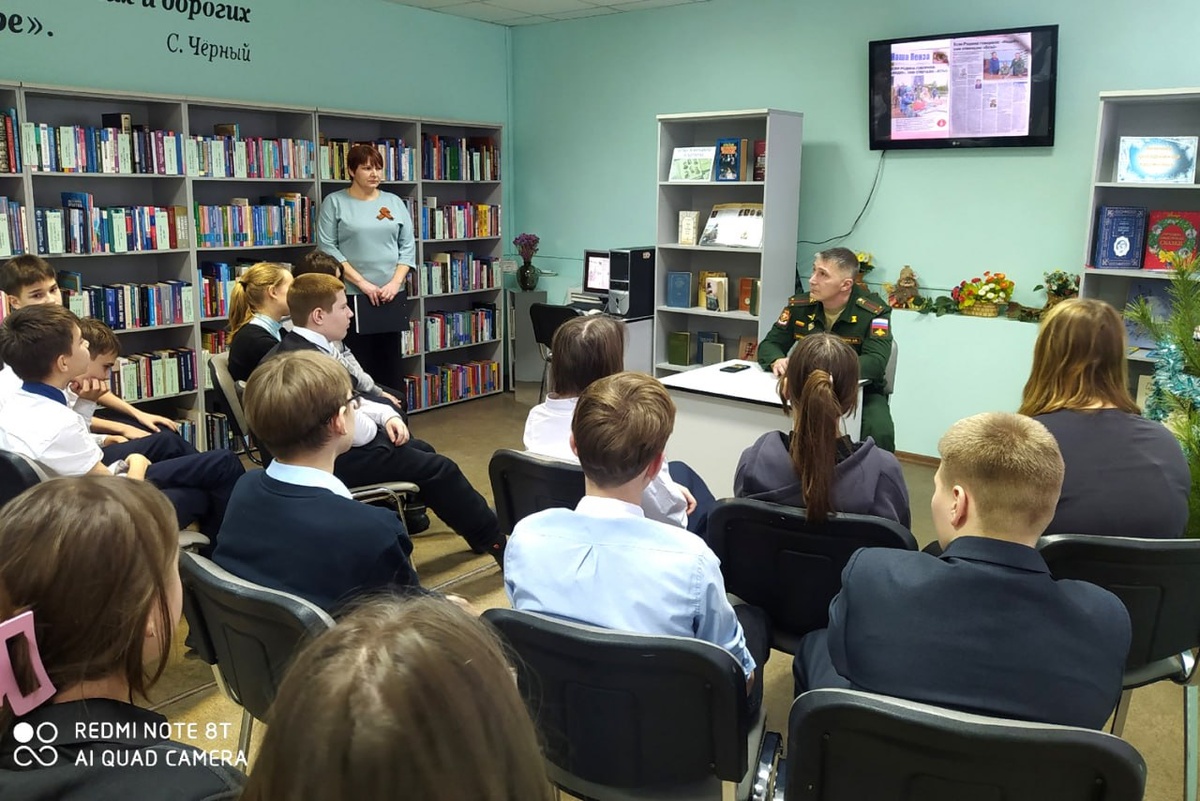 А. И. Куприна 22 декабря в городской библиотеке №7 им. А. И. Куприна прошла важная и по-настоящему живая встреча — патриотический вечер с ветераном СВО, финалистом программы «Герои Пензенского края» Дмитрием Викторовичем Поворовым. Сотрудники библиотеки познакомили ребят с биографией героя, рассказали о его мужестве и самоотверженности при выполнении воинского долга. Дмитрий Викторович поделился личной историей, рассказал о своём решении отправиться в зону СВО, о службе, фронтовом быте и поддержке со стороны соотечественников. Разговор получился откровенным и честным. Школьники задавали вопросы о событиях на передовой, о моральной силе, товариществе и вере в победу. Особое внимание было уделено теме патриотизма, любви к Родине и ответственности за её будущее. В завершение встречи к участникам обратился первый заместитель председателя Пензенской РООООО «Российский Союз ветеранов Афганистана и специальных военных операций» Юрий Александрович Мажачкин, подчеркнув значимость таких встр