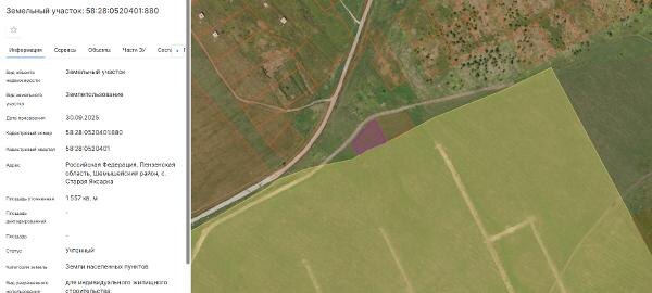 Название: Земельный участок из земель населенных пунктов с кадастровым номером 58:28:0520401:880, общей площадью 1557 кв.м., с видом