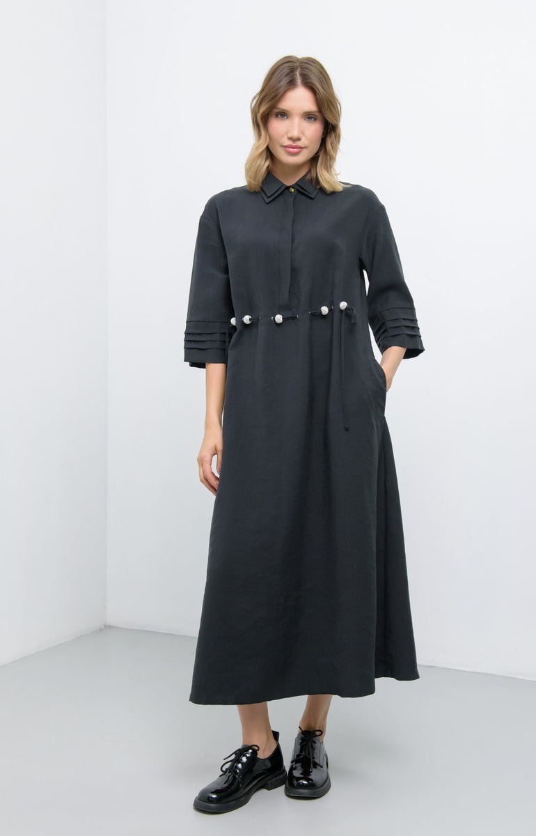 Бывает ли у вас это чувство — тихое, почти интимное? Что вы достойны особенного платья. Не для праздника и не для «выхода в свет», а просто для себя. Для утреннего кофе на террасе, для прогулки без цели, для дня, когда хочется чувствовать невероятную нежность к себе. Такое платье не должно мешать. Оно должно дышать вместе с вами, ласкать кожу тканью и создавать тот самый силуэт — немного свободный, немного небрежный, но удивительно женственный. Я хочу показать вам три платья Agenda Wear — как три состояния красивой жизни. Это платье — для дней без спешки. Для прогулок в парке, поездок за город, разговоров, которые не хочется заканчивать. В нём легко дышится и так же легко быть собой. Свободный силуэт здесь не превращается в балахон благодаря мягко обозначенной линии талии и продуманным вертикалям. Платье не подчёркивает лишнее, но аккуратно собирает фигуру — вы чувствуете форму, а не прячете себя. Натуральный лен или хлопок с мягкой фактурой — ткань, которая живёт вместе с телом. Она