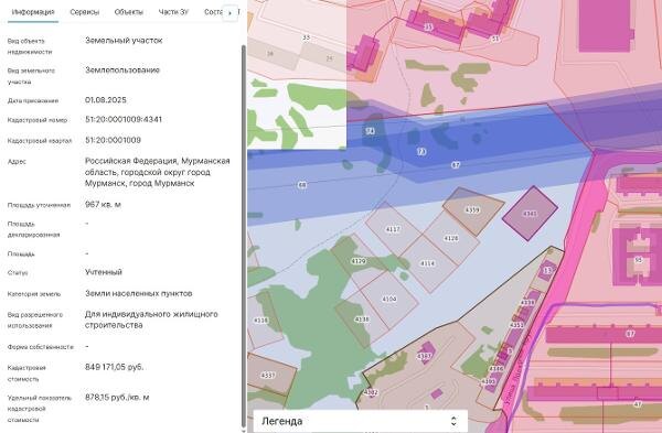 Название: Земельный участок с кадастровым номером 51:20:0001009:4341, площадью 967 кв