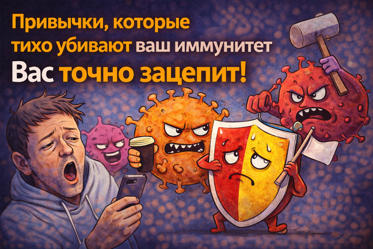 Эти привычки убивают ваш иммунитет, а вы даже не замечаете! Вы не курите. Не пьёте каждый день. Одеваетесь по погоде и вроде бы «следите за собой». И всё равно — простуды цепляются одна за другой. Слабость не проходит. Иммунитет будто работает вполсилы. Самое неприятное — вы не делаете ничего явно вредного. Но именно в этом и ловушка. Иммунитет редко рушится из-за одного сильного удара. Чаще — из-за маленьких привычек, которые мы считаем нормой. Привычка №1. Жить в постоянном «чуть-чуть стрессе» Не паника. Не истерики. А тот самый фоновый режим: спешка, тревожные мысли, напряжение «на автомате». Организм в таком состоянии постоянно вырабатывает кортизол. А кортизол — главный враг иммунитета. Он: снижает активность защитных клеток; мешает восстановлению; делает вас более уязвимыми к вирусам. И вы можете этого даже не чувствовать. Просто «часто болею» — и всё. Привычка №2. Недосып, который вы считаете нормальным «Я сплю 6 часов — мне хватает». Самообман номер один. Иммунная система работ