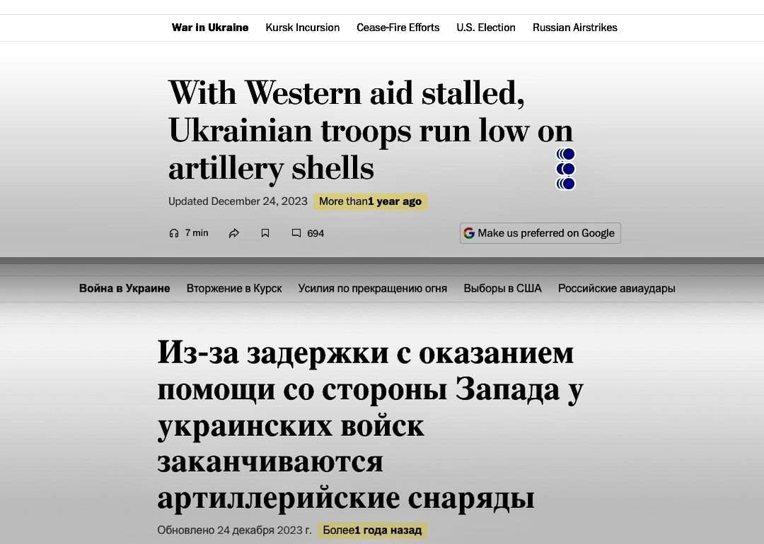 - Газета The Washington Post опубликовала материал о нарастающей нехватке артиллерийских снарядов в ВСУ и растущем производстве в России