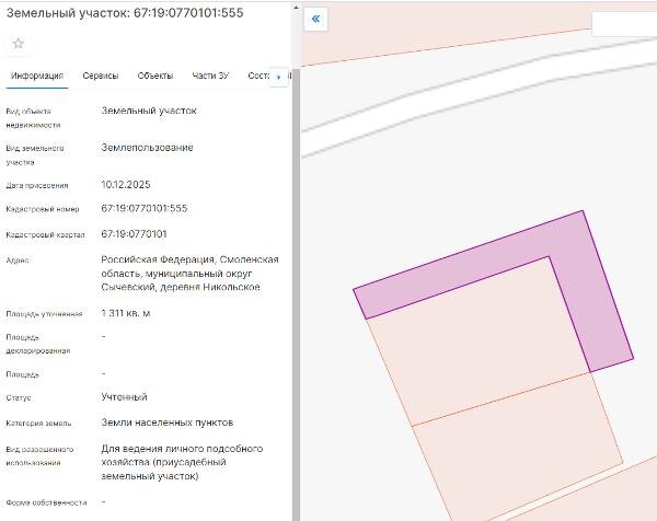 Название: Земельный участок относящийся к категории земель населенных пунктов расположенный по адресу: Российская Федерация, Смоленская