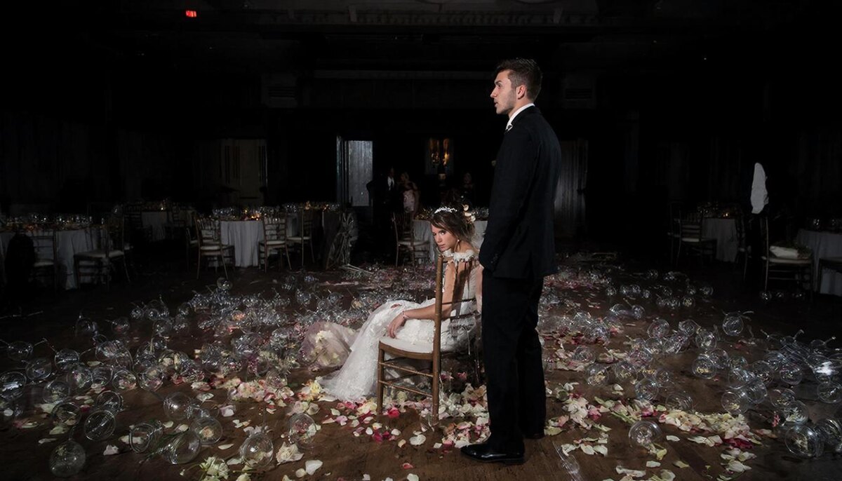 Марина стояла у окна, со спущенной фатой, без макияжа, с красными глазами. Она выглядела так, будто не спала двое суток.