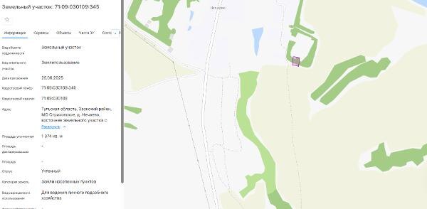 Название: продажа земельного участка из земель населенных пунктов с кадастровым номером 71:09:030109:345, площадь 1374 кв