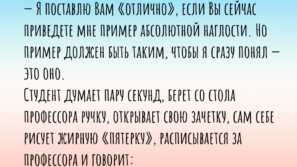 Раз уж мы заговорили про технику и наглость, расскажу реальную историю, которая произошла в моем универе пару лет назад.