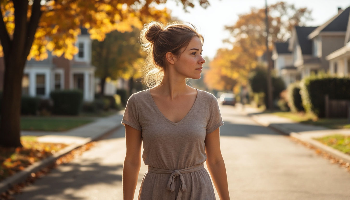 Встревоженная Мария вышла на улицу, оглядываясь по сторонам.