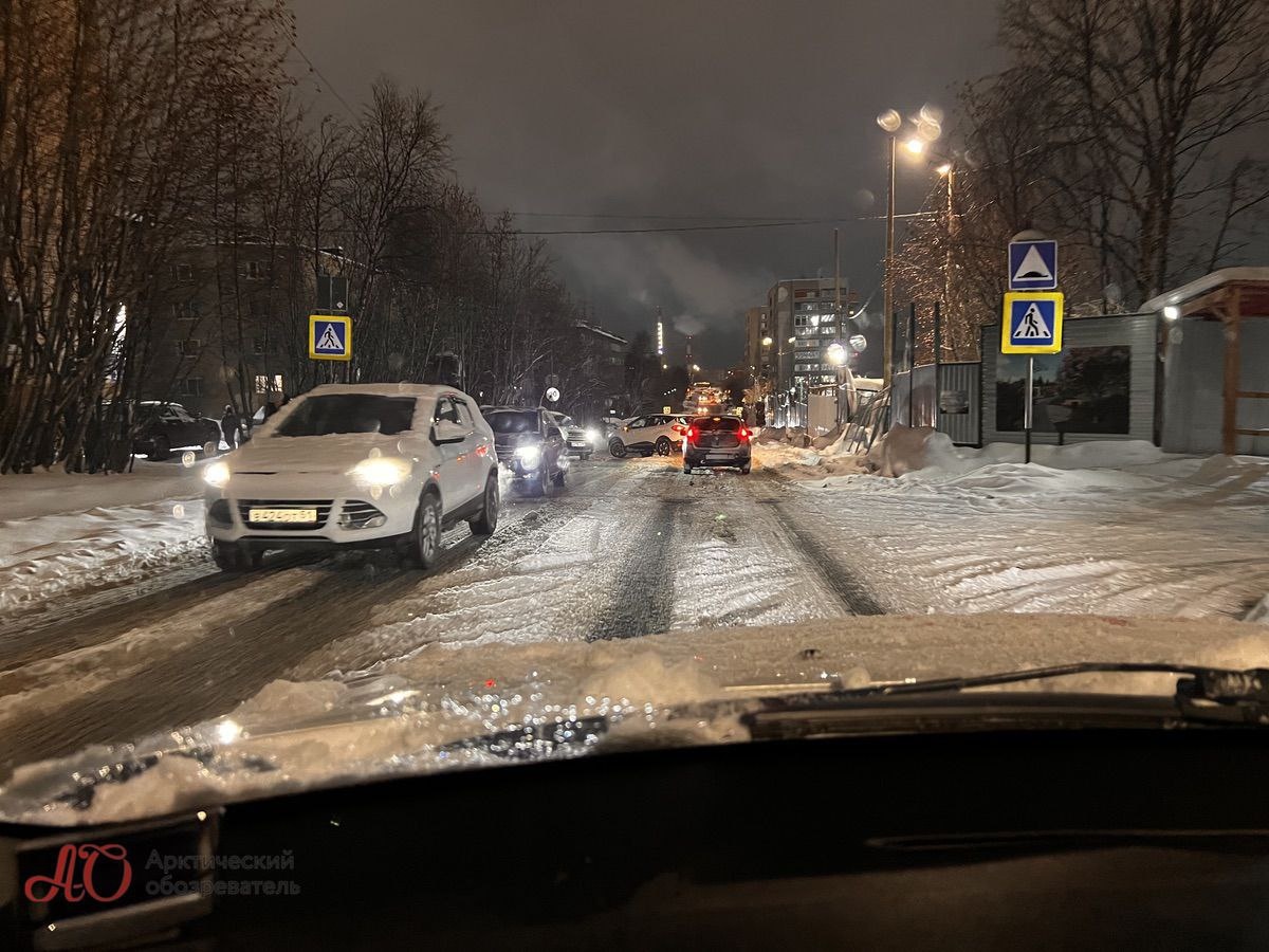 Утренняя поездка по Мурманску показала, что городские службы не могут справиться даже с небольшим ночным снегопадом: практически везде, даже