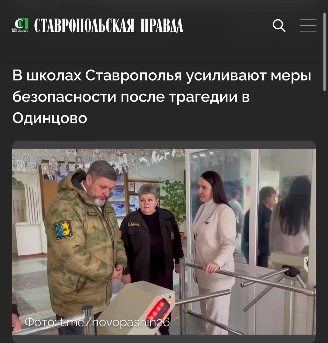 После трагедии в подмосковном Одинцово на Ставрополье приступили к масштабной проверке безопасности в образовательных учреждениях региона. По поручению губернатора Владимира Владимирова проводится комплексная ревизия систем защиты в школах. Особое внимание уделяется работоспособности рамок металлодетекторов и функционированию тревожных кнопок. Первую проверку осуществили глава Кировского округа Николай Новопашин совместно с заместителем Ириной Битик. Они посетили школу № 13 города Новопавловска, где подтвердили штатную работу рамок металлодетекторов и пропускных шлагбаумов. В ходе встречи с руководством школы обсуждалась возможность внедрения дополнительной меры защиты — установки магнитного замка на входе во двор учебного заведения. Такой механизм уже успешно функционирует в гимназии № 1. Николай Новопашин подчеркнул важность обеспечения надёжных мер безопасности в каждой школе и заверил, что работа в этом направлении будет продолжена.