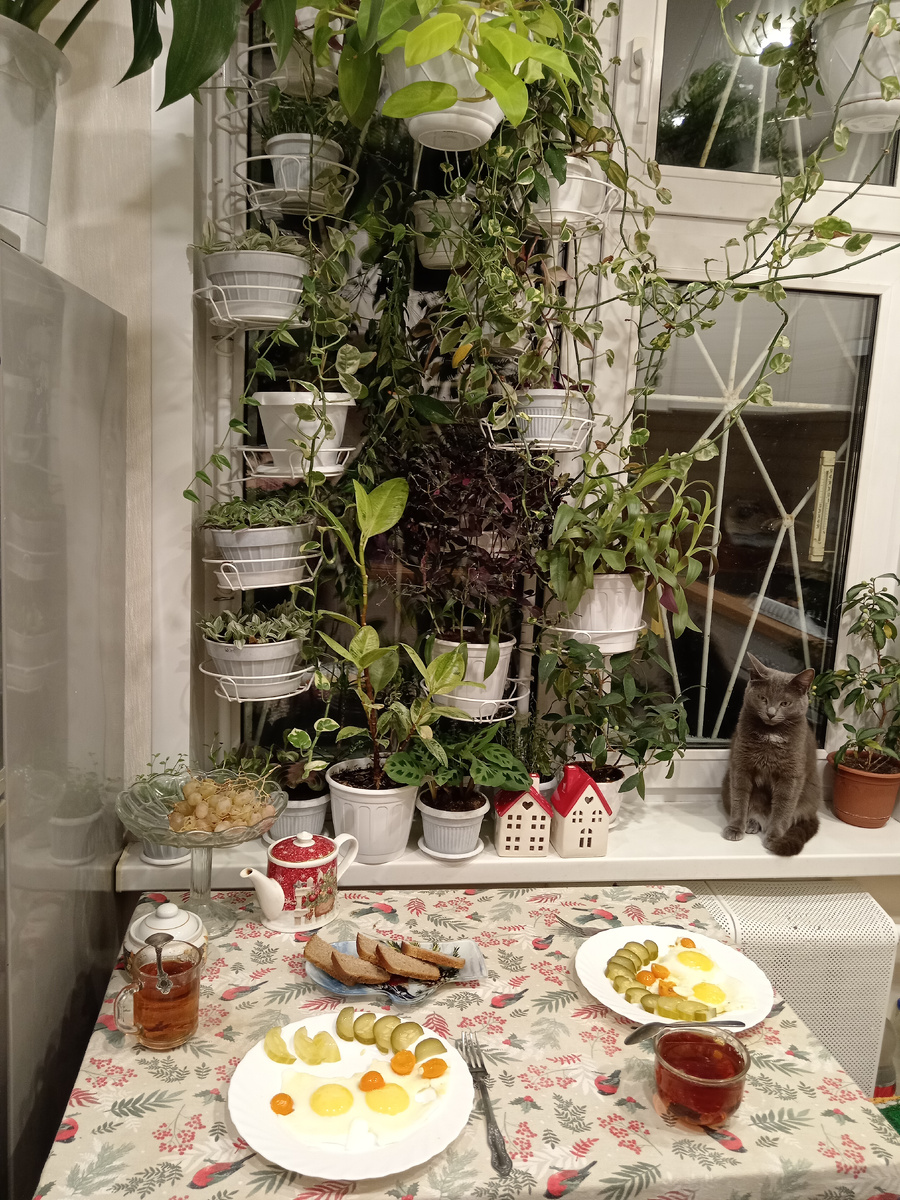 Пока варились, насыпала подсолнечных семечек в кормушку. Синички и снегири тоже есть хотят.