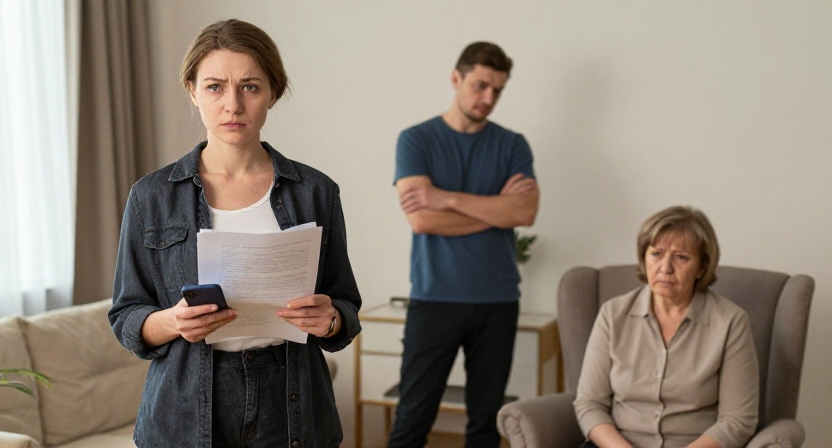 Снова пауза. Потом приглушённый голос свекрови на заднем плане: «Кто звонит? Что она хочет?»