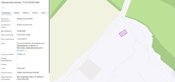 Название: право заключения договора аренды земельного участка из земель населенных пунктов с кадастровым номером 71:01:030121:944, площадь