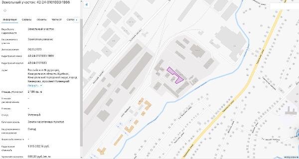 Название: Земельный участок, пл.2136 кв.м, кадастровый №42:24:0101033:1866, разрешенное использование: склад, по адресу: г.Кемерово