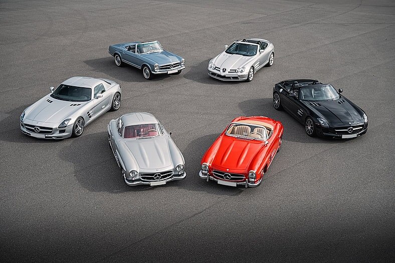 На парижский аукцион RM Sotheby's 28 января отправилась не просто подборка машин, а целая материализованная история бренда Mercedes-Benz. Коллекция Silver Star одного владельца оценивается в сумму свыше $5 миллионов и представляет собой шесть ключевых глав из летописи немецкого автопрома. Это квинтэссенция инженерного гения, дизайнерской мысли и безупречного коллекционного чутья, выставленная на торги. Вот что именно составляет этот уникальный ансамбль автомобилей для коллекционеров, оцененный в миллионы долларов: Mercedes-Benz 300 SL Gullwing (1954): Альфа и омега коллекции, автомобиль-легенда с алюминиевым кузовом на трубчатом каркасе и, конечно, теми самыми дверьми-«крыльями чайки». Экземпляр 1954 года, один из 167 выпущенных в первый год производства, после реставрации в 2016 году сменил исходный бело-серый цвет на культовое сочетание серебро с красным салоном. Его стартовая цена — фантастические $2 млн. Mercedes-Benz 300 SL Roadster (1962): Открытая версия иконы. Этот родстер, с