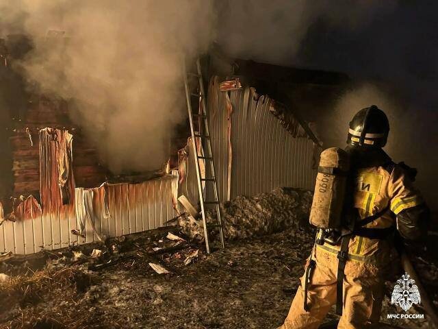 🧯Вчера вечером загорелся двухквартирный дом. Пожар охватил крышу, веранду и хозпостройки. 🧑🚒Один из жильцов выбрался сам и серьезно не пострадал. После тушения огня под завалами спасатели нашли тело женщины. ❗️Причины пожара сейчас выясняют специалисты МЧС. 📸: МЧС России по Омской области #пожар