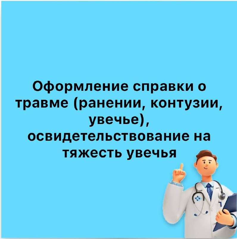 Оформление справки о травме (ранении, контузии, увечье), освидетельствование на тяжесть