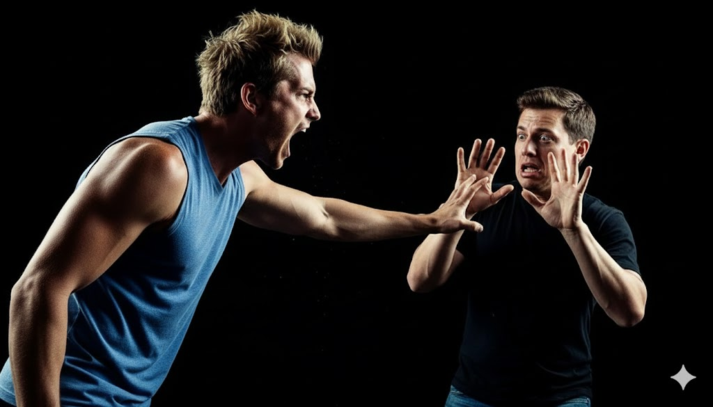 Работает крик + движение + состояние. Звук — это не цель. Это спусковой крючок для вашего тела и тормоз для чужой психики. Пример не как звук, а как ощущение: