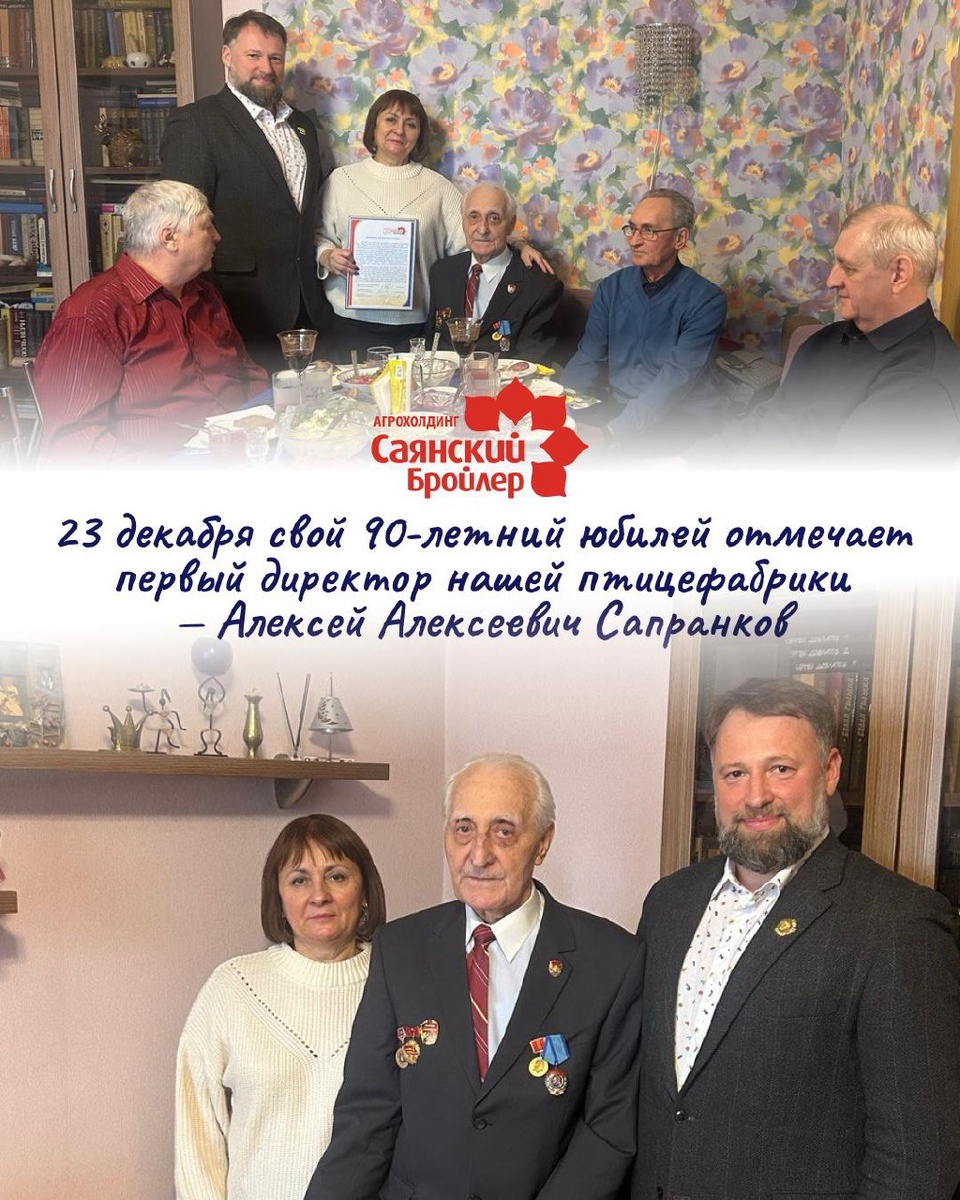 Свой юбилей Алексей Алексеевич отмечает в кругу семьи — рядом с самыми близкими и родными людьми. В этот день к нему лично приехали с поздравлениями председатель совета директоров ООО «Саянский бройлер» Владислав Валерьевич Буханов и начальник отдела социального развития Ляпина Марина Николаевна. Они передали тёплые слова поздравления и благодарности от всей большой команды «Саянского Бройлера», отметив значимый вклад Алексея Алексеевича в становление нашей птицефабрики — предприятия, продукцию которого сегодня знают и выбирают тысячи семей Иркутской области. Декабрь 1990 года стал знаковым этапом в истории предприятия. Именно тогда был подписан акт Государственной комиссии о вводе в эксплуатацию первого пускового комплекса мощностью 2 миллиона бройлеров в год. Время было непростое: талоны, очереди, неопределённость. Стране остро требовались мясные продукты — качественные, недорогие и доступные как можно быстрее. В этот ответственный период Алексей Алексеевич принял уже построенную