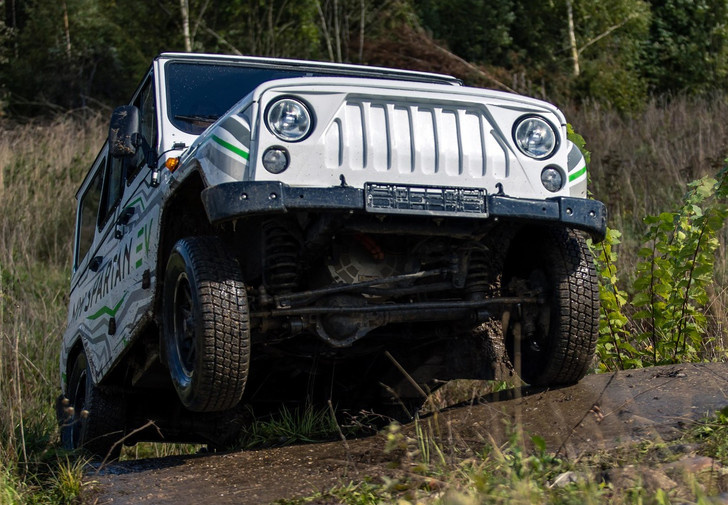 Несколько особняком стоит проект 2020 года UAZ Spartan EV, который разрабатывался вместе с чехами. Это УАЗ «Хантер» электродвигатель (163 л.с.) вкупе с полноприводной трансмиссией. Задний межколесный дифференциал блокируется.