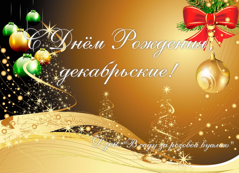Дорогие Декабрьские именнинки, примите наши искренние и сердечные поздравления с Днём рождения! 🎂🎁🥀🥂🍾💰🎊🎈 От всей души желаем Вам крепкого здоровья, душевной гармонии, благополучия, неизменной поддержки родных и друзей. Пусть радость, оптимизм и удача будут всегда рядом, а все самые добрые слова и пожелания, сказанные в эти дни, воплотятся в жизнь! С уважением и самыми тёплыми пожеланиями, автор, все подписчики и гости канала "В саду за розовой вуалью"! 🎂🌹🥂🍾💰❤️🤗