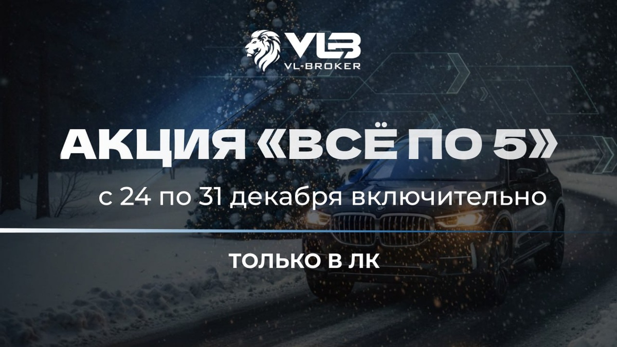 🤩 Акция «ВСЁ ПО 5» от VL-BROKER — целых 8 ДНЕЙ! В преддверии Нового года мы хотим поблагодарить вас за доверие. Мы ценим каждого клиента и стремимся, чтобы сотрудничество с VL-BROKER приносило не только результат, но и выгоду. ➡️ С 24 по 31 декабря включительно Таможенное оформление каждого автомобиля из Японии и Кореи — фиксированная цена 5 000 ₽. 📌 Важно: акция действует только при подаче заявки через Личный кабинет VL-BROKER 🔹Чтобы завтра вы могли действовать, а не готовиться, важно сделать шаг уже сегодня: *️⃣ Напишите вашему менеджеру: ФИО и контакты; *️⃣ Получите логин и пароль для доступа в Личный кабинет VL-BROKER; *️⃣ Убедитесь, что у вас готов полный пакет документов (паспорт, ИНН, СНИЛС, инвойс при оплате). Это прямое увеличение вашей операционной прибыли перед закрытием года. С наступающим Новым годом!