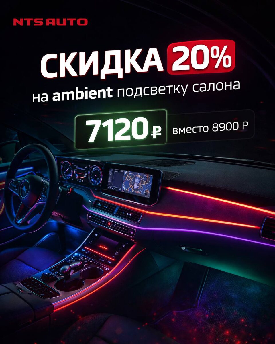 % Мы сделали отличный подарок к праздникам🔥 Наша ambient-подсветка салона теперь стоит 7 120 ₽ вместо 8 900 ₽, она каждый день создаёт атмосферу уюта и праздника в автомобиле. Мягкий свет, стильный внешний вид и ощущение новой машины не на неделю, а на годы вперёд. Просто используйте промокод НОВЫЙГОД при оформлении заказа на сайте:👇 https://nts-auto.com/catalog/ambient_light/ambient_light_nts_auto_s_privetstviem_18_v_1_rgb_prilozhenie_chernaya_nit_/ Идеальный вариант, если ищете подарок на Новый год себе или близкому автолюбителю 🚗✨ 👉И не забывайте участвовать в розыгрыше 10000₽ - все условия уже ждут вас в закреплённом посте.