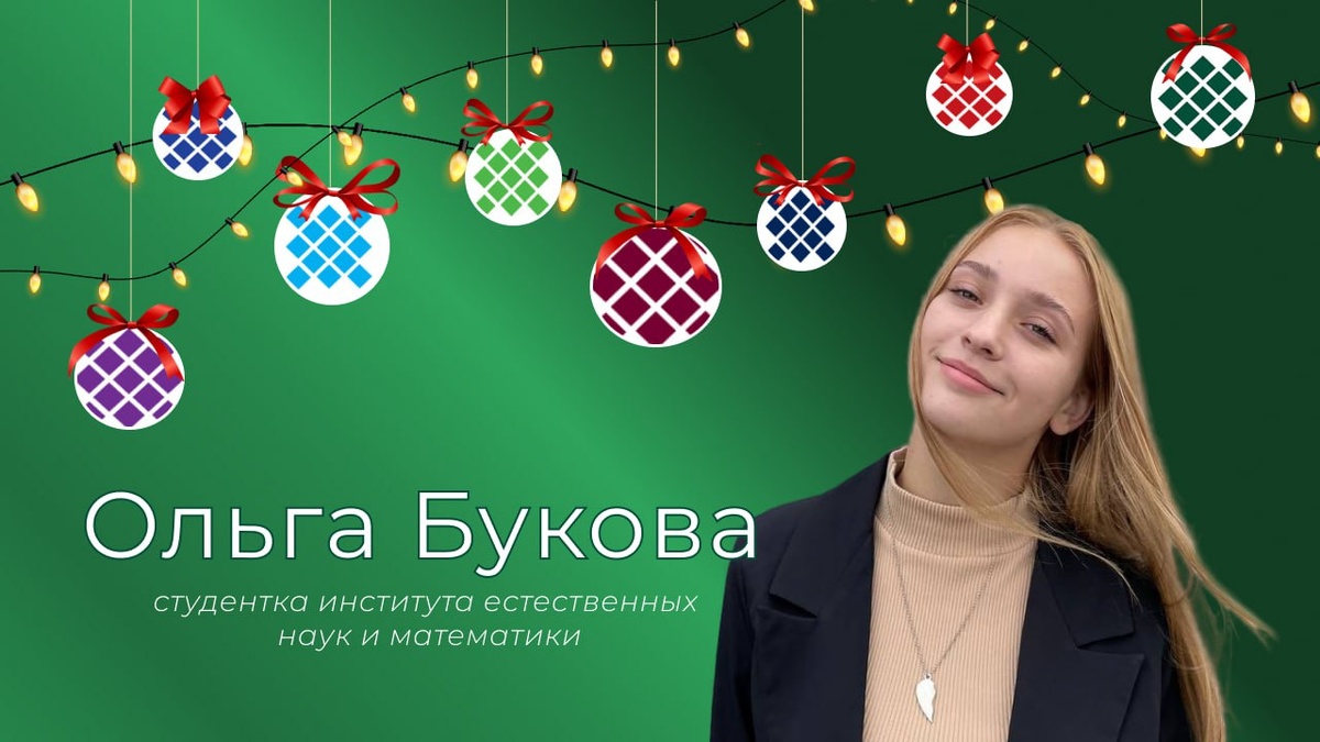 Мы продолжаем серию наших небольших интервью с новогодним настроением. Ведь зарядиться им должен каждый! А сегодняшнюю героиню вы наверняка знаете благодаря её достижениям в спортивной деятельности. Ольга Букова, студентка 2 курса института естественных наук и математики, обучающаяся по направлению «Педагогическое образование, профиль: Безопасность жизнедеятельности, Физическая культура».