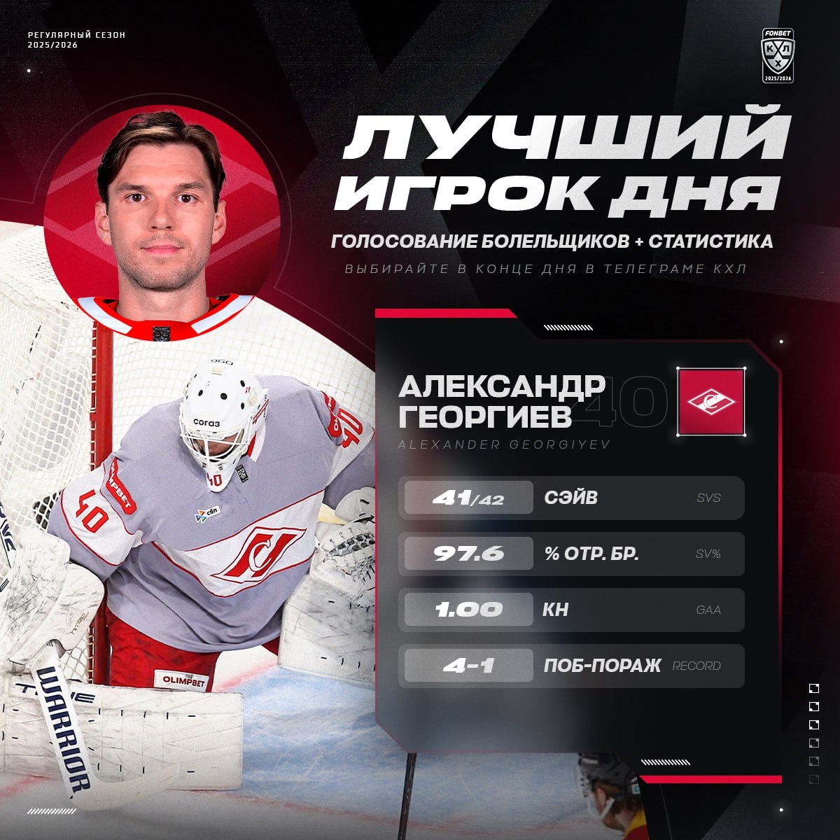 🔴 Александр Георгиев освоился в «Спартаке»: сделал 41 сэйв и одержал 4-ю победу в 5 играх сезона.