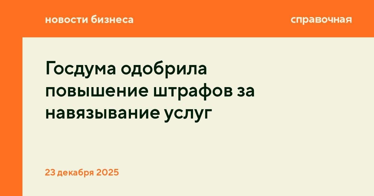 и услуг. Закон вступит в силу, когда его подпишут Совет Федерации и президент. Теперь штрафы будут такие: 🔘 для должностных лиц и ИП — от 50 до 150 тысяч рублей (было от 2 000 до 4 000 рублей); 🔘 для юрлиц — от 200 до 500 тысяч рублей (было от 20 000 до 40 000 рублей). С 1 сентября бизнесу в России запрещено навязывать дополнительные услуги клиентам. Пример навязывания: онлайн-агрегатор покупки авиабилетов добавляет к заказу платную страховку или выбор места, и чтобы не купить лишнее, покупателю нужно вручную убирать галочки. Сейчас бизнесу нужно получить письменное согласие клиента при продаже дополнительных товаров или услуг. 🔥 @spravochnaya🔥