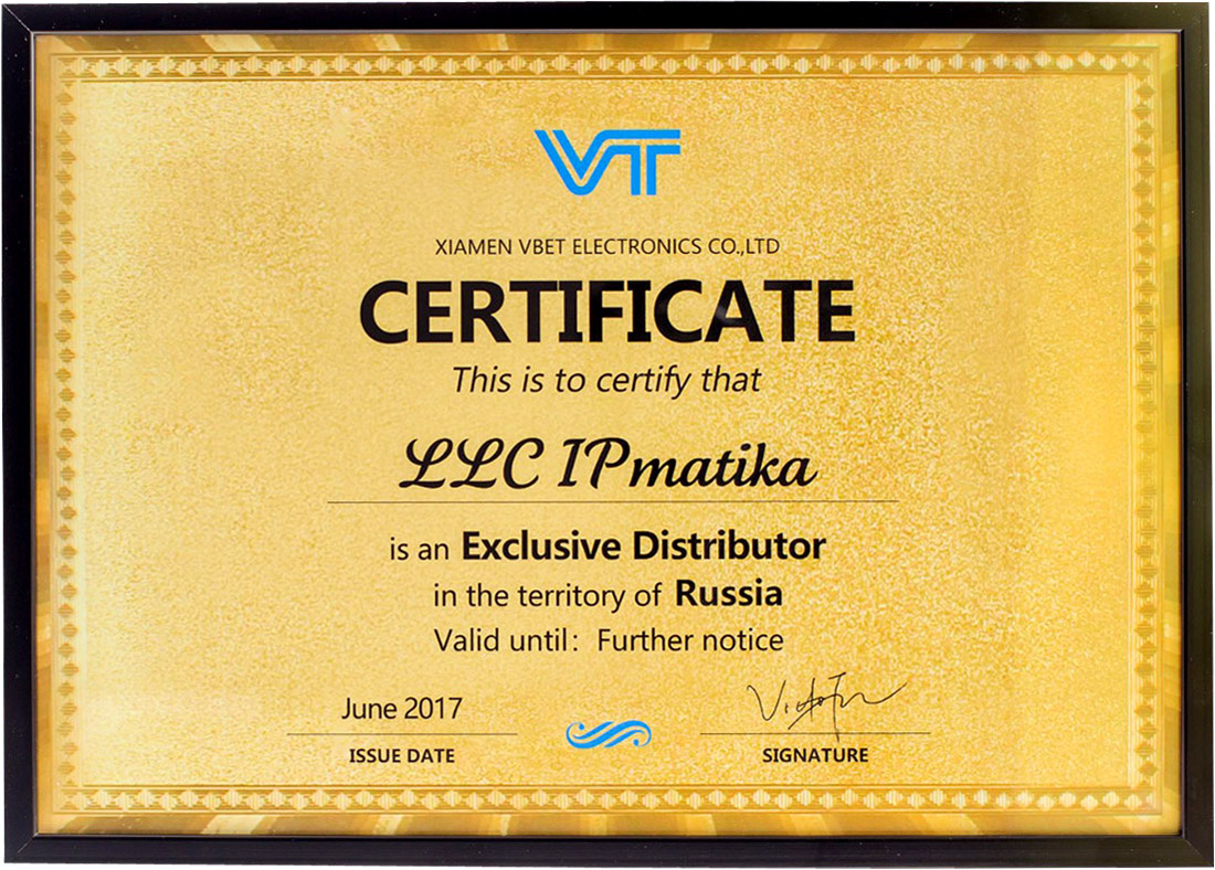 Компания АйПиМатика подтвердила статус эксклюзивного дистрибьютора VT на территории РФ