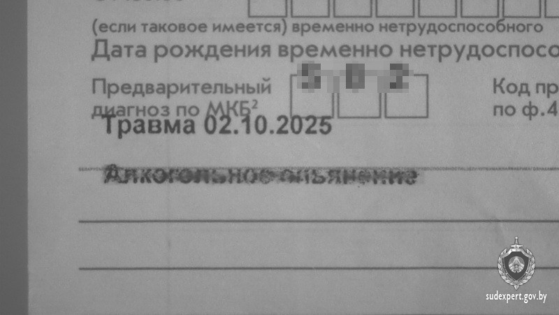 В ноябре 2025 года минчанин принес на работу с виду обычный больничный. Но в нем была деталь, заметив которую работники отдела кадров позвонили в милицию. Оказалось, мужчина хотел скрыть детали диагноза, но в итоге на него завели уголовное дело. В Госкомитете судебных экспертиз сообщают, что мужчина работал дворником и ушел на больничный по причине травмы. Сотрудники отдела кадров поняли, что с листками нетрудоспособности что-то не так, и вызвали милицию, поэтому больничный оказался на технической экспертизе документов. Там установили, что в листках вместо фиолетовой линии была еще одна надпись: рядом с записью «Травма от 02.10.2025» были слова «алкогольное опьянение». Таким образом, 46-летний минчанин решил скрыть от работодателя факт получения травмы в состоянии алкогольного опьянения. В отношении работника возбуждено уголовное дело по статье 380 УК РБ (статья о подделке документов). Есть о чем рассказать? Пишите в наш телеграм-бот. Это анонимно и быстро