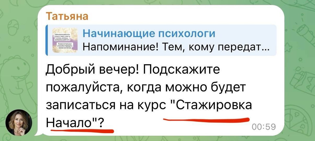У меня сейчас на группе Стажировки 70% участников ходят на интервизию ✅ Если у вас нет клиентов и вы не готовы их брать от слова совсем, предзапись на Стажировку тут начнем в марте ✅ Если у вас есть 1/2 клиента платных, бесплатных (не важно) или они все время приходят на одну встречу и не остаются или вы хотите взять клиента, но не решаетесь, вам можно и на Стажировку и на Интервизию записаться и начать можно сейчас тут https://new-psycholog.ru/intervision ✅ Если все вопросы с первой сессией, сеттингом, документальным оформлением, подходом, способом работы у вас уже решены, у вас есть клиенты вам просто в интервизию для того, чтобы сверять свою работу. Оставаться один на один с клиентом вредно (речь не про саму сессию) ✅ Если у вас устойчивая практика вам в группу интервизии PRO https://new-psycholog.ru/intervision Если есть вопросы, задавайте 👇