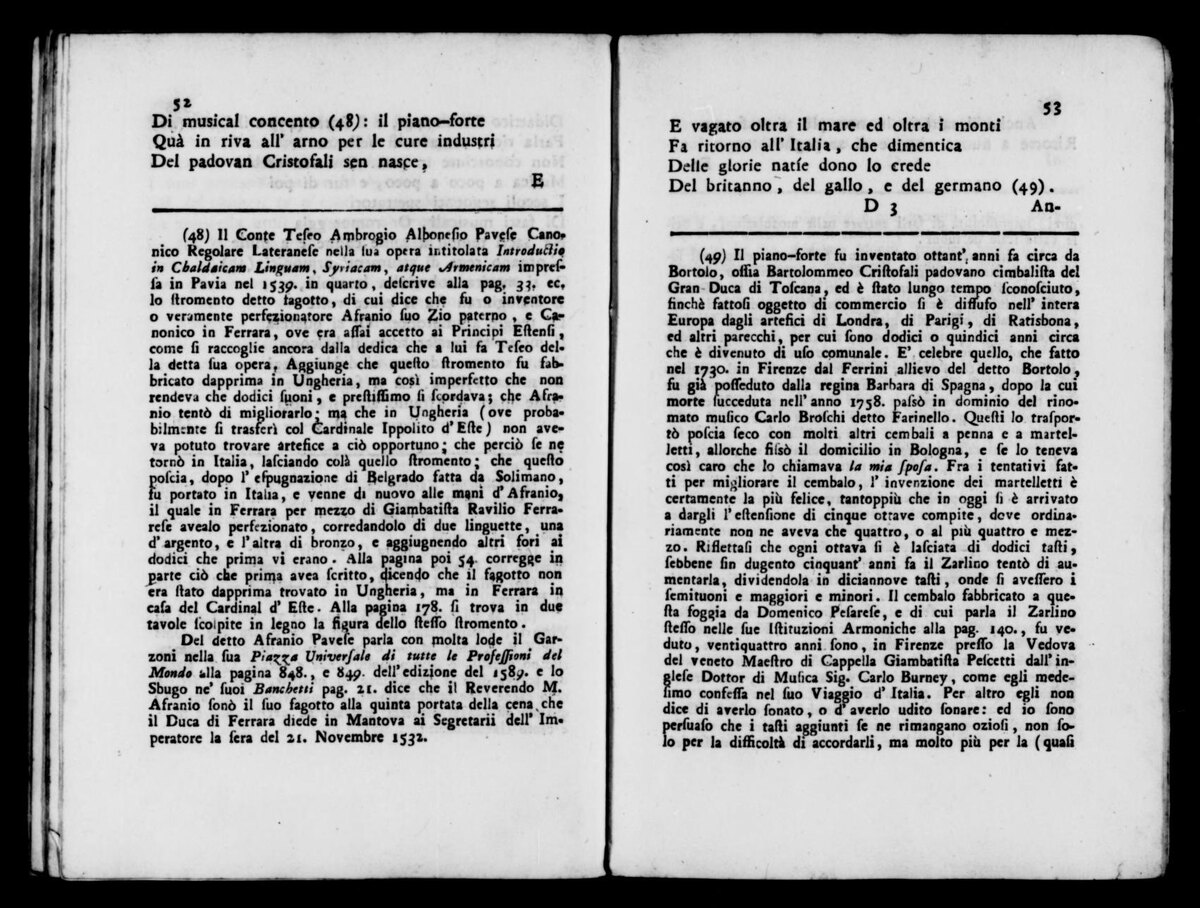 В примечаниях к поэме о музыке (1794) Джамбаттиста Далл'Олио касается истории «piano-forte», изобретенного Бартоломео Кристофори