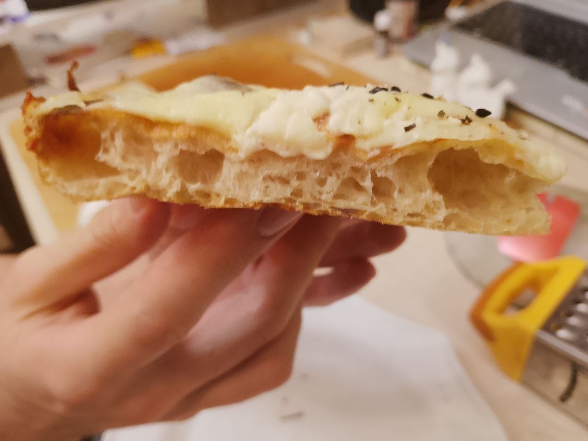 __________________________________________________________________________________________ Пекарский процент: Мука хлебная 100, вода 75, дрожжи 0.5, соль 2, солод диастатический 2. Всего 179.5. Примечание. 5%-10% муки можно заменить спельтовой, ржаной или цельнозерновой мукой для более яркого вкуса. __________________________________________________________________________________________ Рецепт рассчитан для противня размером 23 на 35 см. Для теста (общий вес 414.6 г): Для соуса используйте половину рецепта белого соуса для пиццы. Для начинки: Приготовление. Источники: