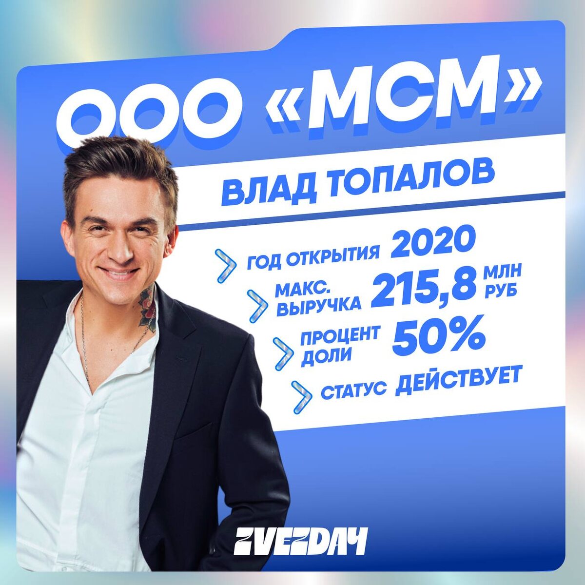 Ну а что, двоих на тот момент детей от Регины Тодоренко как-то же надо было поднимать. Громкие заявления артист тогда сделал в своих соцсетях: «Продолжаем заседания экспертного совета рабочей группы "По вопросу законодательного регулирования криптовалют", членом которого я являюсь». Поклонники в тот момент увлечение Топалова высмеяли, напомнив верному и надежному супругу о том, что ранее его жена потеряла почти 3 миллиона рублей, вложившись в крипту, о чем она сама и рассказывала. Несмотря на хиханьки да хаханьки Влад пошел «в свои страхи» и финансовую стабильность. В 2020 году Топалов зарегистрировал ООО «МСМ», официально оно занимается финансовыми услугами. Певец владеет бизнесом на равных с некой Алисой Шабаловой: по 50% каждому. В 2024 году выручка компании составила почти 288 миллионов рублей, чистая прибыль — 215,8 миллиона. Столько в Smash!! не напеть, конечно. Налогов и взносов государству занесли около 16,6 миллиона, все довольны, и Сережа ФНС тоже. Но без драмы никуда. В июне