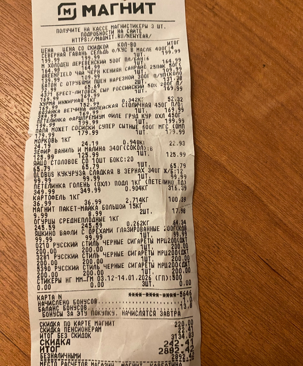 Я аж испугалась, обычно у нас сумма поменьше получается. Взяла чек. Вот он.