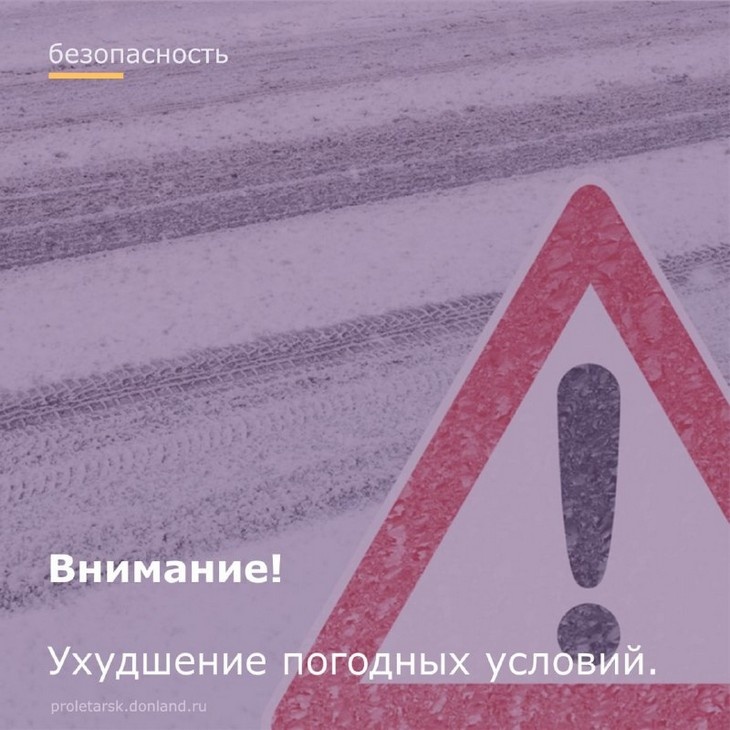 Уважаемые жители Пролетарского района! С 24 по 27 декабря на территории района возможны неблагоприятные погодные условия. Об этом сообщил глава администрации района Валерий Горнич в своем телеграм-канале. Ожидается, что погода будет нестабильной: возможны резкие перепады температуры, снегопады и усиление ветра. Ночные температуры могут опускаться до ощутимых минусовых значений, а днем сохранится мороз. 26 и 27 декабря прогнозируется снег, местами сильный, возможны метели и ухудшение видимости на дорогах. Из-за перепадов температуры высока вероятность образования гололеда и снежного наката, особенно в утренние и ночные часы. Обращаемся к водителям с просьбой соблюдать скоростной режим, увеличивать дистанцию и избегать резких маневров. Желательно воздержаться от дальних поездок в непогоду. Пешеходам также рекомендуем быть осторожными при пересечении дорог и внимательнее передвигаться по улице. Давайте позаботимся о своей безопасности и постараемся пройти эти дни без происшествий! ООО РГ